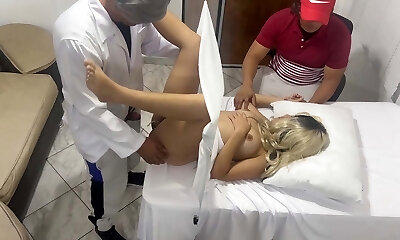 Pervert Poses as a Gynecologist Doctor to Pummel the Stellar Wife Next to Her Dumb Hubby in an Erotic Medical Consultation